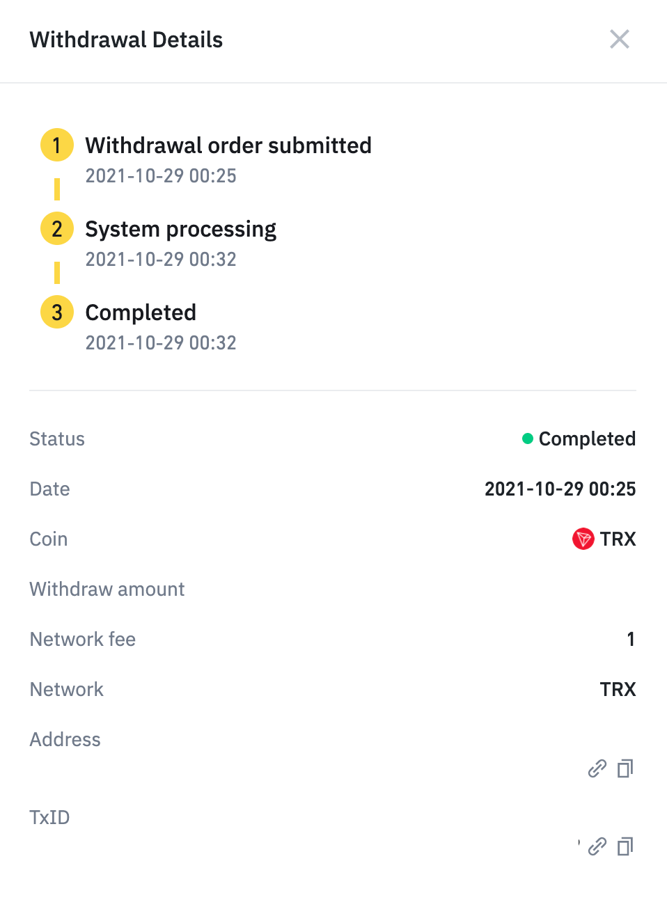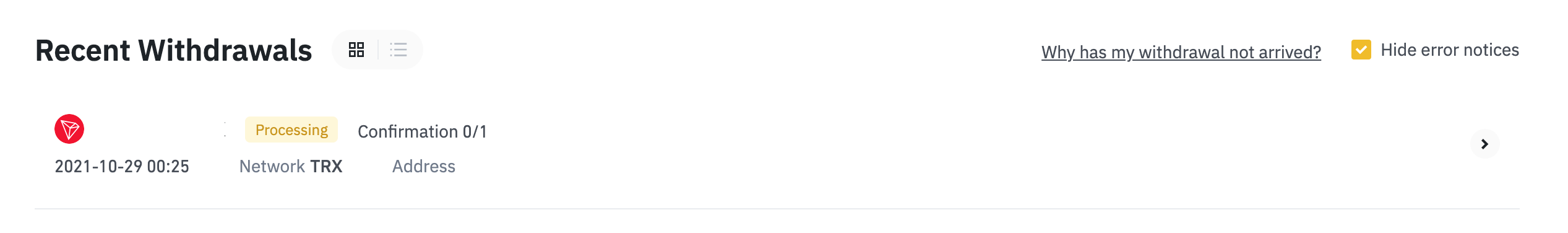 전송을 하고 난 이후 동일한 창에서 하단을 보면 위처럼 최근 출금 내역에 대해서 확인할 수 있는데요. 위같은 경우 Processing으로 나오므로 현재 처리중이라는 이야기입니다. 클릭합니다.