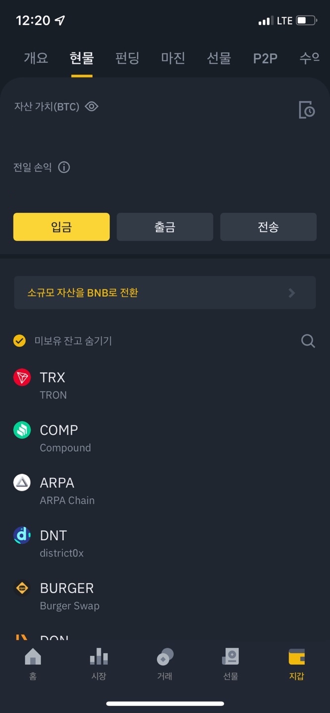 먼저 전송할 코인을 바이낸스에서 구매하여야 합니다. 코인 구매는 휴대폰 바이낸스 어플에서 진행합니다. (웹에서 해도 상관 없음)