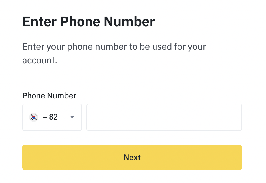 휴대폰 번호를 입력하고 Next 버튼을 누릅니다. 010으로 시작하는 번호를 입력하셔야 합니다.