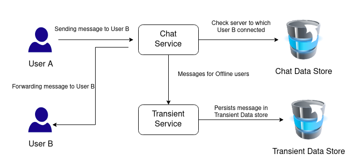 - 수신자가 오프라인 상태라면 transient service에게 메시지를 전달한다. transient service는 수신자가 온라인 상태로 돌아오기 전 까지 분산된 저장소에 메시지를 보관한다.