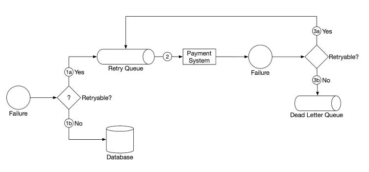 결제 실패를 적절하게 처리하기 위해 다음과 같이 재시도 큐와 데드레터 큐를 사용한다.