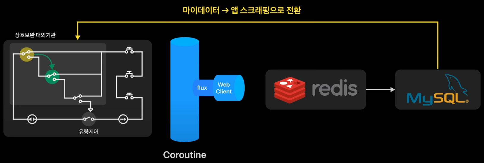 요청 수를 조정했음에도 신용정보원에서 제공하는 마이데이터 API의 실패율이 일정 비율로 증가하게 된다면 계속해서 마이데이터 API를 활용하는것은 좋지않은 고객 경험으로 이어지게 된다. 따라서 만약 고객이 앱 스크래핑 가능한 인증서를 보유했다면 상호 보완이 가능한 대체 기관에서 정보를 가져올 수 있도록 마이데이터의 서킷을 HALF OPEN 처리하여 앱 스크래핑으로 전환한다.