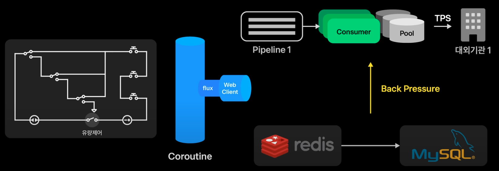 - 대외기관 파이프라인을 통해 많은 유저의 진입을 정해진 TPS에 맞게 대외기관으로 전달함