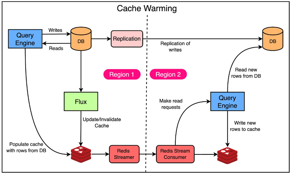 - 다른 리전에서는 직접적으로 캐시를 업데이트하지 않는다. 대신 복제된 키에 대해 쿼리 엔진 계층에 읽기 요청을 보낸다.